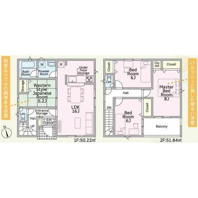 号棟番号:2号棟 制限10m、建物面積に別途ルーフバルコニー約6.48平米有り、駐車場2台(車種による) |